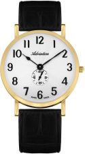 Elegancki zegarek męski renomowanej szwajcarskiej marki Adriatica – A1113.1223QModel A1113.1223Q posiada kwarcowy mechanizm ETA 902 Swiss Made zasilany baterią, dzięki czemu wskazanie czasu jest bardzo dokładne – granica błędu tego typu mechanizmów wynosi zaledwie 10 sekund w skali miesiąca, a bateria wystarcza średnio na 2 lata użytkowania.Zegarek został wykonany z wysokiej jakości stali szlachetnej pokrytej złotem (warstwa ok. 3 mikronów) w technologii PVD – gwarantującej długotrwałą ochronę przed ścieraniem się złocenia. Wyróżnikiem modelu A1113.1223Q jest delikatny, lecz wytrzymały pasek ze skóry naturalnej idealnie dopasowujący zegarek do nadgarstka właściciela. Kolejnym atutem jest pokrywające tarczę specjalnie utwardzone szkiełko mineralne. Srebrna tarcza zegarka jest subtelna lecz wyraźna i czytelna. Czarne wskazówki i indeksy korespondują z kolorystyką koperty.Klasa wodoszczelności tego modelu to 30 M (3 ATM) co oznacza, że zegarek jest kroploszczelny – odporny na krople i pot, nie wolno jednak go zanurzać, nie zaleca się również myć w nim rąk. Wymiary: Szerokość koperty 41 mm Grubość koperty 7 mm Waga zegarka 49 g Zegarek wysyłamy w oryginalnym, eleganckim opakowaniu(twarde pudełko wraz z ozdobną, papierową torebką) z dołączoną gwarancją oraz dowodem zakupu.