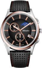 Elegancki zegarek męski Adriatica A8282.R214CH napędzany jest przez niezwykle precyzyjny, szwajcarski mechanizm kwarcowy (Eta G10 Swiss Made) zasilany baterią. Koperta modelu zbudowana została ze stali szlachetnej 316L, niealergizującej, oksydowanej w dwóch kolorach srebrnym i różowego złota. Czarną tarczę pokrywa szkiełko szafirowe, które zapewnia optyczną przejrzystość (najlepszą wśród stosowanych szkiełek w zegarkach), jest bardzo trudne do zarysowania a także odporne na różnice temperatur i działanie rozpuszczalników.