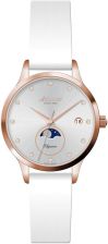 Damski zegarek Atlantic 229040.44.27L to elegancki i szykowny model z kolekcji Elegance Moonphase szwajcarskiego producenta. Wyposażony w dokładny, szwajcarski mechanizm kwarcowy ETA F05.841.H1. Srebrną tarczę, zdobioną szlifem słonecznym pokryto szkiełkiem szafirowym które zapewnia optyczną przejrzystość (najlepszą wśród stosowanych szkiełek w zegarkach), jest bardzo trudne do zarysowania a także odporne na różnice temperatur i działanie rozpuszczalników. Dodatkowym atutem jest praktyczny datownik wskazujący aktualny dzień miesiąca oraz wskaźnik faz księżyca . Indeksy stanowią eleganckie kryształki Swarovskiego. Całość utrzymana jest na skórzanym, białym pasku. Zegarek Atlantic 29040.44.27L to ponadczasowy, klasyczny model na każdą okazję.