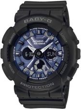 Casio Baby-G BA-130 -1A2ER to damska odmiana popularnego, męskiego odpowiednika tej marki. Koperta oraz elastyczny pasek zostały wykonane z wysokiej jakości tworzywa. Koperta wraz z paskiem tworzą idealną kompozycję w kolorze czarnym. Analogowo-cyfrowy cyferblat uzyskał podświetlenie diodą LED, która umożliwia odczytanie godziny w ciemności. Ten model posiada funkcję czasu światowego oraz automatycznego kalendarza, które doskonale sprawdzą się podczas międzynarodowych podróży. Funkcje 24-godzinnego stopera i timera przydadzą się podczas aktywności fizycznych, a 5 alarmów z funkcją drzemki może służyć jako przypominacz lub budzik. Model wyposażono w mechanizm kwarcowy zasilany baterią, która podczas standardowego użytkowania zapewnia pracę przez okres 2 lat. Wodoszczelność 100 M pozwala swobodny kontakt z wodą np. pływanie.