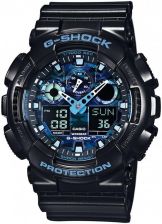 Casio GA-100CB-1AER to propozycja z serii G-Shock, wyprodukowany przez firmę Casio. Dzięki zastosowanemu systemowi antywstrząsowemu jest wyjątkowo odporny na upadki i uderzenia. Czarna tarcza z granatowymi elementami doskonale komponuje się z ciemnym paskiem. Wodoszczelność na 200 metrów, pozwala na swobodne pływanie z czasomierzem na ręce. Podświetlenie LED pozwala na odczyt godziny nawet w zupełnej ciemności. Na dodatkowe funkcje składają się: czas światowy, kalendarz automatyczny, pięć alarmów dziennych oraz stoper i timer.