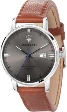 Model MASERATI Eleganza R8851130002 to męski zegarek pasujący do ubioru business casual. Koperta została wykonana ze stali szlachetnej umieszczona jest na pasku skórzanym. Srebrna tarcza czasomierza chroniona jest, odpornym na stłuczenia, mineralnym szkiełkiem. Wodoszczelność na poziomie 5 ATM (50m) sprawia, że jest odporny na zachlapania. Dodatkowo przy godzinie 3 znajduje się datownik wskazujący aktualny dzień miesiąca.
