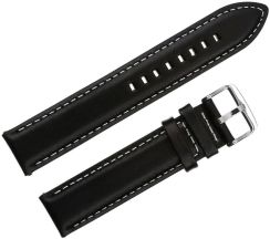 Skórzany czarny matowy gładki prosty pogrubiany pasek do zegarka firmy PACIFIC. Szerokość 20 mm. Pasek pasuje do wszystkich zegarków ze standardowym mocowaniem o szerokości 20 mm. Komplet teleskopów gratis