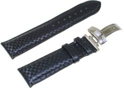 Czarny zwężany lekko błyszczący skórzano-materiałowy pasek do zegarka firmy ADRIATICA. Szerokość 22 mm. Struktura karbonu. Zapięcie bransoletowe. Pasek pasuje do wszystkich zegarków ze standardowym mocowaniem o szerokości 22 mm. Komplet teleskopów gratis